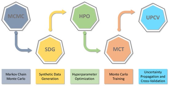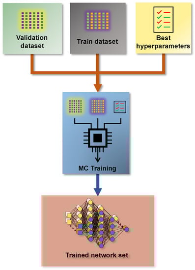 Figure 5 presents a simplified schematic diagram of this step in the methodology. It is possible to observe that the MC training stage boils down to massive training on top of the generated data. The result is a set of equally probable trained AI models that comprehensively account for the uncertainty sources.