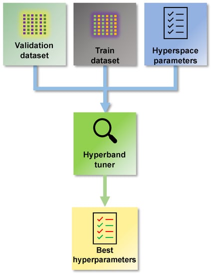 - Li, L.; Jamieson, K.; DeSalvo, G.; Rostamizadeh, A.; Talwalkar, A. Hyperband: A Novel Bandit-Based Approach to Hyperparameter Optimization. J. Mach. Learn. Res. 2016, 18, 1–52. [Google Scholar]