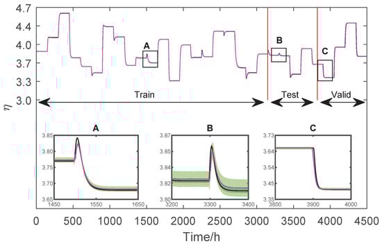The methodology proposed in this article includes a supplementary validation stage of the built AI model. In this step, the data used for cross-validation are labelled “Test data” in Figure 3 (Note that the set called “validation” is used during training). In a complementary way, validation in the context of dynamic models with uncertainty needs to be evaluated to compare the coverage regions. In this context, a model is considered validated when the coverage of regions of models is overlapping, implying that the values are statistically equal.