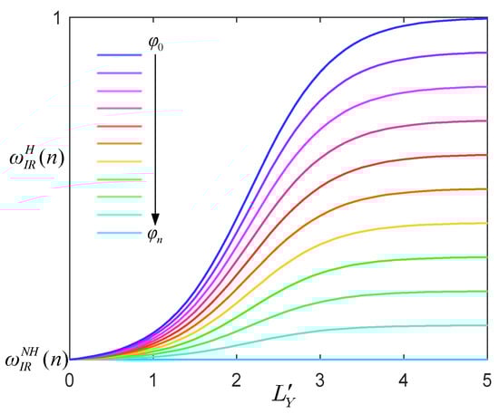 After the actual test, it is found that when a = 0 and b = 5, the infrared low-frequency weight curves have a more uniform variation range under different constraint factors φn. That is, a = 0, corresponding to the halation critical value, and b = 5, the brightest pixel in LY. The curves of (n) are shown in Figure 4.