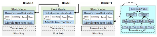 Two main components, namely, the block header and the block body, are included in each block. In particular, the block body uses the Merkel tree data structure to store transaction data packed by miners, and the block header stores some nontransaction data, which are listed as follows: