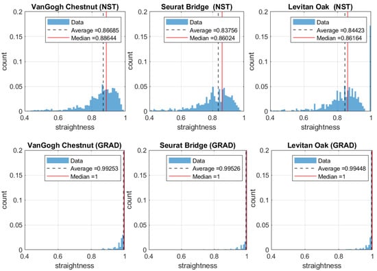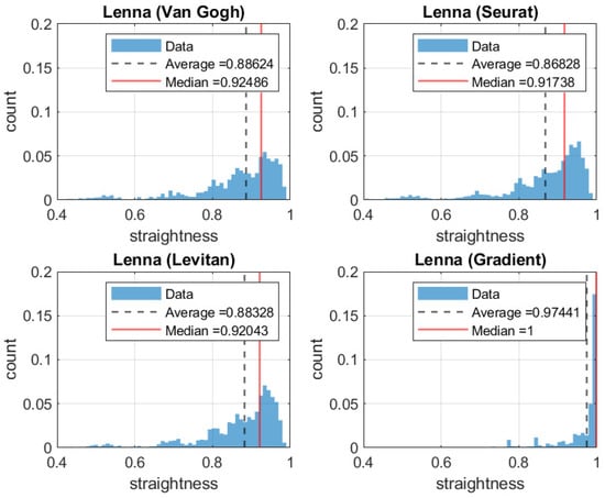 Figure A1. Brushstroke straightness histograms for images in test 1.