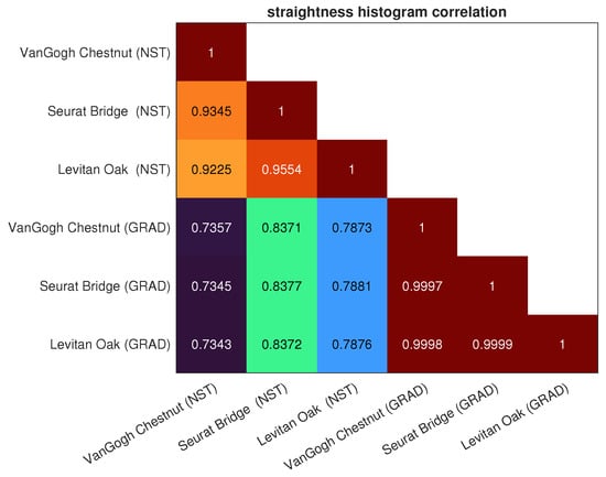 Figure A2. Brushstroke straightness histogram correlations for images in test 1.