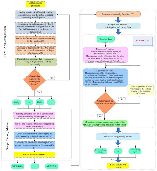 carbon trading price prediction; CEEMDAN; sample entropy method; improved SSA; MKELM combing RBF kernel and poly kernel functions MSC: