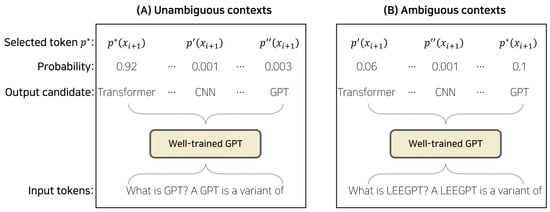 Despite the impressive performance of GPT models, they are known to exhibit a phenomenon called hallucination, wherein they generate outputs that are contextually implausible or inconsistent with the real world [22,23]. The hallucination phenomenon has been attributed to the model’s inherent limitations, particularly its inability to discern when there is no well-defined correct answer for a given input. Consequently, GPT models can generate low-likelihood outputs that deviate from the expected output based on the input context and the true data distribution.
