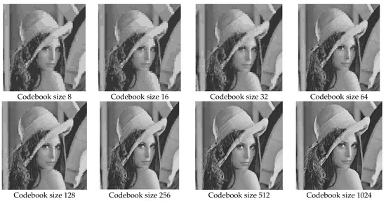 Decompressed images of LENA with respect to codebook sizes.