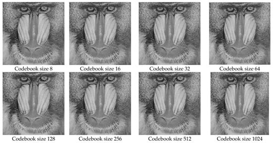 Decompressed images of BABOON with respect to codebook sizes.