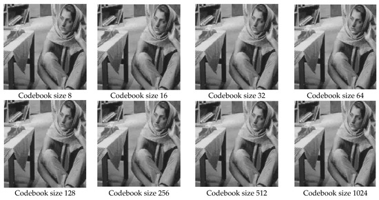 Decompressed images of BARB with respect to codebook sizes.