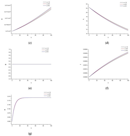 where the parameters are defined in is the Caputo derivative, see [24,25], and . Table 1 illustrates the descriptions of [2,3,11,12,26,27,28].