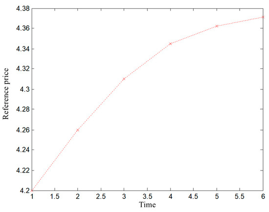 where denotes the expectation, is the initial state variable, and the constraint represents the update rule for the reference price. The current reference price is a function of the previous price. In Popescu and Wu [33], the reference price is a weighted average of the historical price, where more recent prices are assigned a large weight. In Nasiry and Popescu’s [35] study, the reference price is a linear combination of prices in the memory window. In this study, we adopted the same reference price update rule as Popescu and Wu [33], as follows: