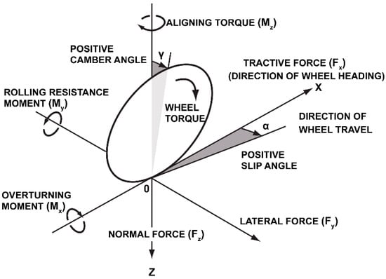- Oertel, C.; Wei, Y. Tyre rolling kinematics and prediction of tyre forces and moments: Part I–theory and method. Veh. Syst. Dyn. 2012, 50, 1673–1687. [Google Scholar] [CrossRef]