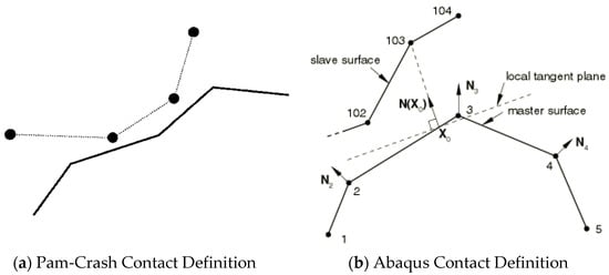 The basic methodology of the contact mechanics in this simulation followed the Node to Surface contact as shown in Figure 9. For large deformation contact, node-to-surface contact elements were used [15]. The implemented contact method in this research was a penalty method, where penetration was allowed but not penalized [14]. The discretization of the variables is the only requirement for the standard penalty method. The penalty force can be calculated with three different solutions: linear penalty, non-linear penalty, and kinematic iterative [14].