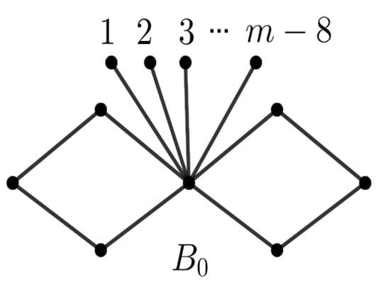 If and , we have , , , , , . Then, for the graph G, , a contradiction with Corollary 1. Therefore, all pendent edges in G must be associated with the same fixed vertex of degree two in .