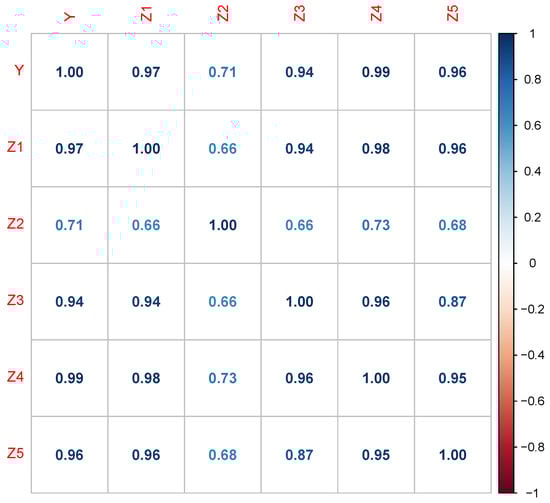 To check the linear association among the different variables of the data set, a correlation plot is given in Figure 2. This plot shows that the regressors are highly correlated. For example, the correlation between Z1 and Z3 is 0.94, whereas it is 0.98 between Z1 and Z4. Similarly, Z3 and Z4 have a correlation coefficient value of 0.96. The correlation coefficient values suggest that there may exist a serious problem of multicollinearity. To assess the strength of multicollinearity, VIF was calculated for the data, and the results are listed in Table 23. The table suggests that the regressors are strongly correlated and their VIF values are much higher. For example, the VIF value for Z1 is 32.144, which is an indication of a severe multicollinearity problem in the data.