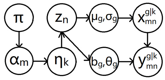 The notations of the other parameters are identical to those described in Section 2.3.2, including the dataset , latent variables, and parameters in the model. We denote the whole parameter set as , where . Among all the parameters, are preset and remain unchangeable, whereas the others are learned by the algorithm and will be updated during iterations.