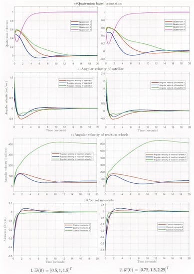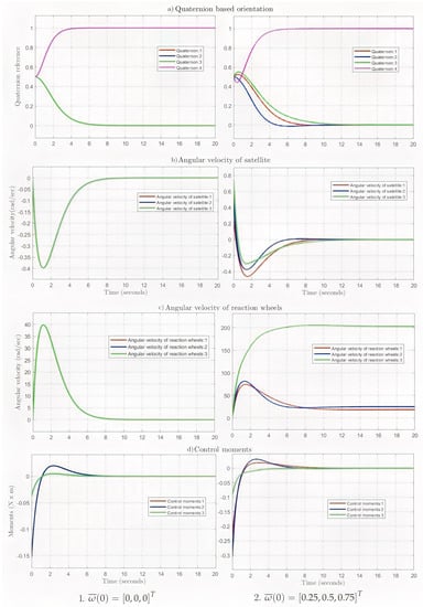 An exception is a special case where the initial conditions for the angular momentum of the satellite  are zero. Then, the linear system in Equation (20) takes the following form: