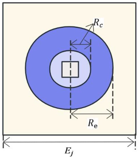 The introduced concept here is the smallest enclosing circle, which refers to the smallest circle that can enclose a group of points on the plane. Once robots are grouped, the center and radius of the smallest enclosing circle are calculated for each robot group. If there is only one robot in the current group, the radius of the smallest circle is set to the robot’s radius. The average radius, denoted by , is then calculated using the radius of the smallest enclosing circle for all groups, and is only calculated when it has been found. A target is deemed found when the distance tolerance between the actual target position and final convergence position of the robots is within 0.5 m. Another evaluation index is the success rate, which is calculated as the ratio of the number of successful experiments to the total number of experiments, and it is indicated by the variable . An experiment is marked as successful if the robot population successfully searches all targets.