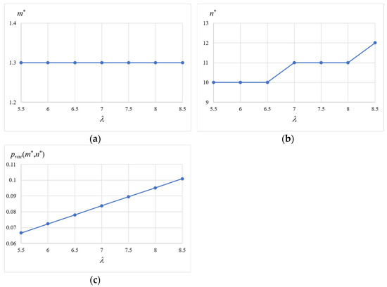(a) Optimal m, (b) optimal n, and (c) optimal for various values of λ.
