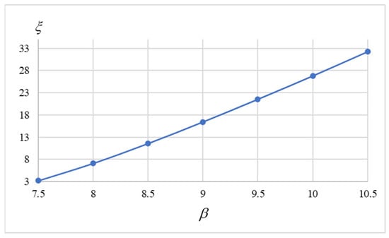 This function is used because (i) , i.e., if the server does not take a vacation, the mean EL remains as , and (ii) , i.e., m approaches a certain constant efficiency value, , when the mean duration of the vacation is sufficiently long. As described in the previous section, initially, the system’s manager decides on the number of customers served in each work period (n) and the mean vacation time . Then, m can be calculated as a function of n and , as given in Equation (17). However, for convenient presentation of the analysis, we consider m and n as the system’s decision variables and then calculate as a function of m and n. Accordingly, by isolating in Equation (17), we obtain