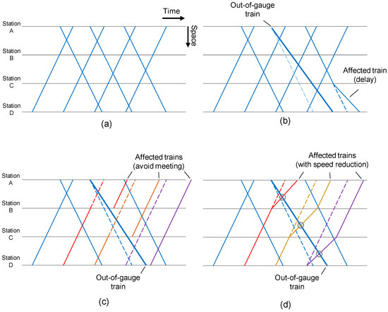 Station tracks that can accommodate out-of-gauge trains are limited. Therefore, the meeting and overtaking stations of out-of-gauge trains should be carefully decided.