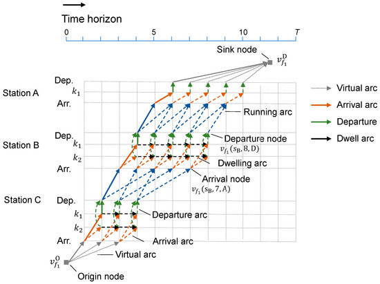 12] applied ‘drive arc’ to represent the train running in a segment between two stations. Principally, the drive arcs for a train in a segment are within a limited set, implying that the running time is a predetermined subject to a min-max range. Meng et al. [