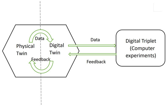A digital twin can be viewed as a combination of computer experiments. However, for geometric, physical, and behavioral models [13], more complex mathematical approximations or equations are often required, which can be difficult to solve in a short amount of time. For instance, in [13], each behavior of a physical entity was described by differential equations. Complex computer models are typically used to solve these equations. Evaluating a single output may take several hours or even days due to the large number of inputs and the complicated system. To overcome the high computational costs, computer experiments aim to find an approximate model that is much simpler than the true (but complicated) model by simulating the behavior of the process on a computer [14]. The distinct nature of computer experiments poses a unique challenge, which requires a special design for the experiment. Motivated by this, we propose a new concept—the digital triplet—which is the counterpart twin of the digital twin. The goal of the digital triplet is to rapidly and efficiently learn and estimate the digital twin, allowing it to avoid complex computations from mathematical equations and provide rapid feedback to the physical system, as shown in Figure 1. The digital triplet is a time-saving and efficient method for describing the digital twin. Many popular models, such as machine learning algorithms used in the construction of rule modeling in digital twins, can be used for its construction. More details on models for constructing the digital triplet are provided in Section 2.