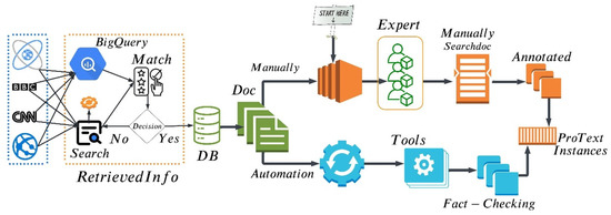 The classifier reviews the text sentences anticipated to the novel label and is associated with earlier fact-checking statements. Merging the data poses proper questions, and social scientists must adopt professional social science standards while expanding their technical skills. The big data model predictions were frequently considered suitable aims on their own [61,62]. The sentences are extracted from the web server, and a deep learning system keeps track of the assertions made. Therefore, using manual and automatic fact-checking, our strategy used fact-checking to identify and match propaganda news claims [63]. As input documents, the architectural pipeline transforms the news from the source file. To evaluate the pipeline’s relevance and reliability, we illustrate the manual and automated annotation process using specialized technology, as shown in Figure 1.