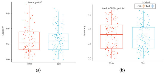 The optimum machine learning model, NLP strategy, and data processing approach were finally determined using Kruskal–Wallis and ANOVA tests. Given the disparity in the number of data points, we decided to use two Kruskal–Wallis trains and tests to compare the machine-learning models and to determine the maximum mean level (data processing and NLP technique) ensemble and RoBERTa, as shown in Figure 8.