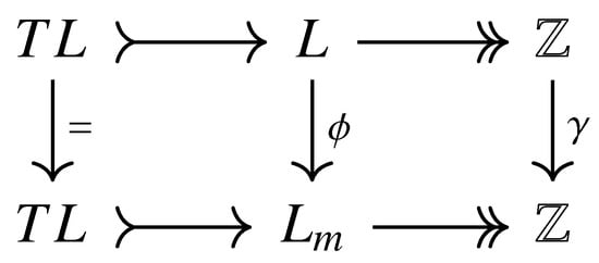 Let . Suppose that there exists a positive integer m such that and . Let and let be defined by , for all . We claim that is a group homomorphism. Indeed, in we have that , so that , but since , then . Thus, ϕ is a group homomorphism and yields a commutative diagram [5] Figure 5.