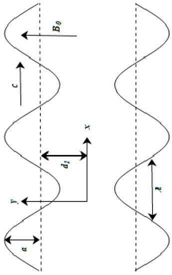 using Equations (4)–(10). The resulting problem later utilizes which is the long wavelength. In addition, which describes small Reynolds number suppositions, is given by