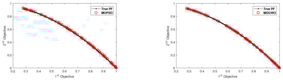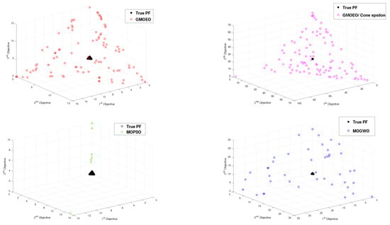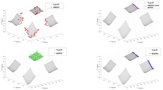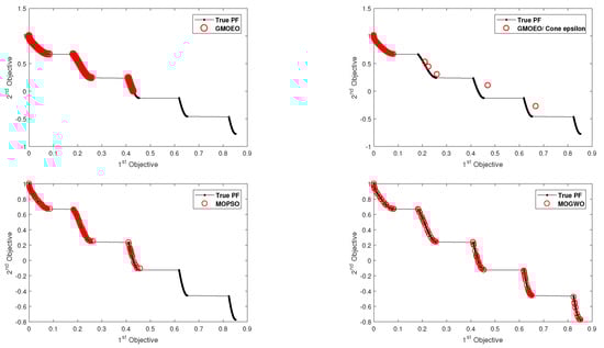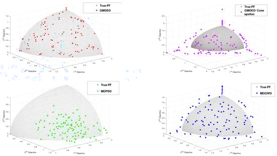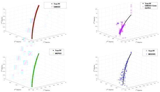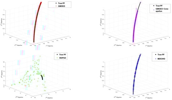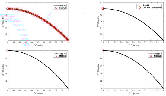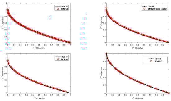 As shown in the presented figures, the convergence, coverage, and excellent distribution of the solutions along the Pareto optimal indicated the efficient performance of the proposed -GMOEO method.