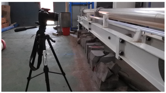 The experiment was based on the fluid–solid coupling experimental equipment for drilling fluid and drill cuttings. This equipment is crucial for developing a better understanding of the behavior of drilling fluid in a wellbore, which is essential for achieving efficient and effective drilling operations. The experimental setup consisted of a transparent acrylic pipe, which simulated the annulus of a horizontal well section, with a total length of 5.5 m. The inner wellbore diameter of the acrylic pipe was 120 mm, which is a standard size for many oil and gas wells. The outer diameter of the drill pipe was 73 mm, which, again, is a common size for the drilling equipment used in the industry (Figure 1).