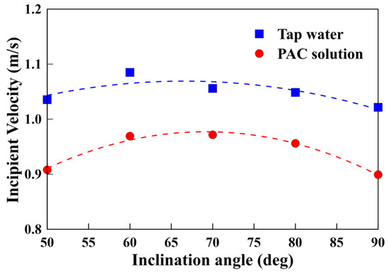 Influence of inclination angles on the incipient velocity of drill cuttings.