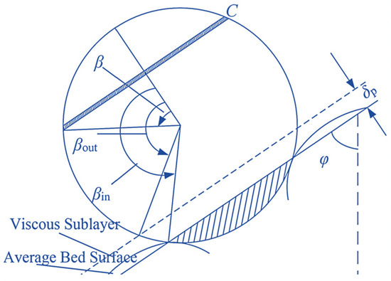 where βout is the outer boundary angle of the viscous sublayer integral, which refers to the angle from the top to the outer boundary of the viscous sublayer; and βin is the integral internal boundary angle of the viscous sublayer, which is the angle from the top of the particle to the contact point with the average bed surface.