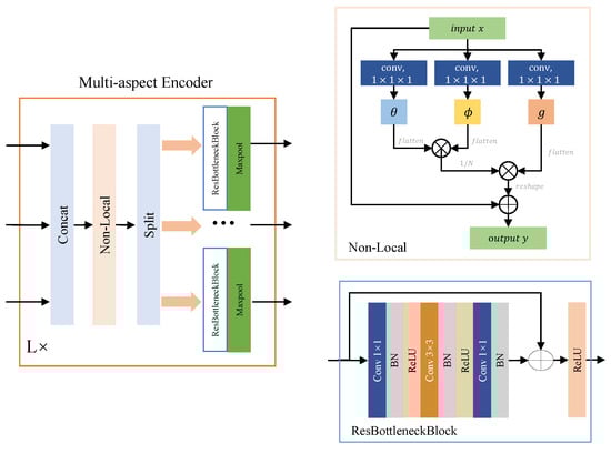 The multi-aspect encoder, which combines Non-Local and ResNet, is designed to achieve multi-aspect feature learning. The main structure and details of the multi-aspect encoder are shown in Figure 6.