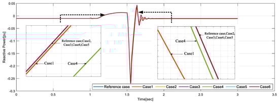 Reactive power dynamic response of the IEEE 39 bus system under operating scenario 2.