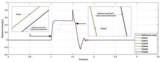 Reactive power dynamic response in the IEEE 39 bus system under operating scenario 1.