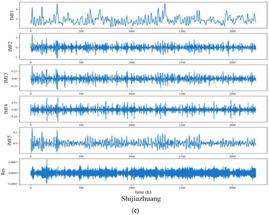 The historical wind speed datasets collected from three regions in China serve as the experimental dataset. These three regions are, respectively, located in Shijiazhuang, Hebei Province; Lanzhou, Gansu Province; and Nanjing, Jiangsu Province. Their latitudes and longitudes are significantly different. Lanzhou and Shijiazhuang are situated in the northwestern and northern inland regions, respectively, both possessing abundant wind energy resources. On the other hand, Nanjing is located in the southeastern coastal area and consistently ranks among the top in terms of offshore wind power installed capacity nationwide. The wind speed sequences from all three regions were measured at a height of ten meters above ground level at hourly intervals. The basic information of the three wind speed datasets is presented in Table 1.
