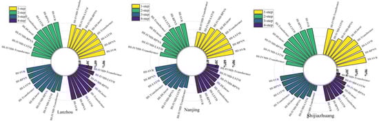 where , , and represent the errors of the comparative methods, while , , and represent the errors of the HI-IVMD-DLinear method. The larger the , , and are, the more superior the precision of the proposed model is.