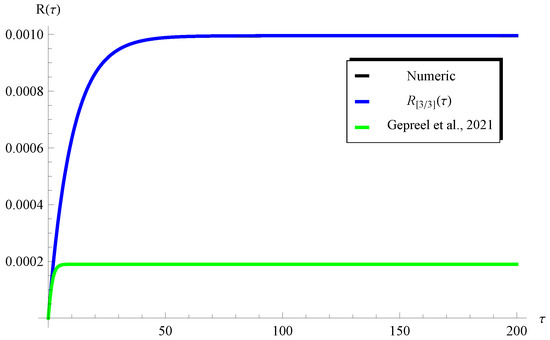 In this section, we focus on validating the accuracy of the current analysis. Various comparisons are performed to reveal the validity of the present PSS and the Padé approximants for the recovered and infected individuals and , respectively. The explicit Runge–Kutta method (ERKM) is chosen as a reference numerical method to explore the effectiveness and efficiency of our accuracy.