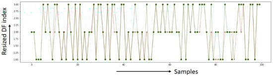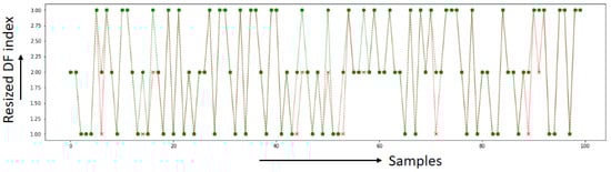 Around 884 individuals at an intermediate risk level have been correctly identified, as have the 884 high-risk individuals. Similarly, the fittest 884 individuals have been accurately identified. A comparison between predicted and tested data has been plotted in Figure 6a using x and o symbols to represent the predicted and tested data, respectively. The CatBoost algorithm has produced an accuracy of 100%, as demonstrated in the overlapping predicted and tested data in Figure 7.