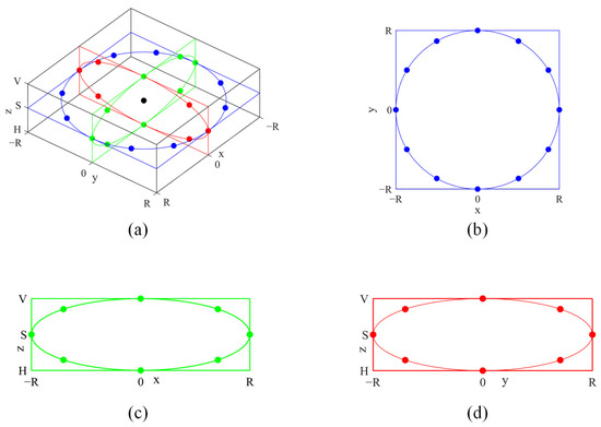 Diagram of OCPP [50]. (a) General view of OCPP, (b) XY plane, (c) XZ plane and (d) YZ plane.