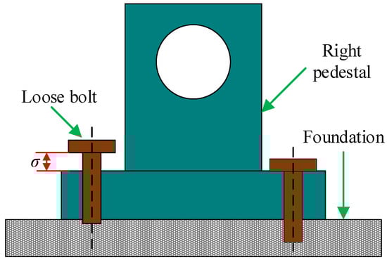 Affected by installation, vibration environment, and structural deformation, looseness is prone to occur between the bearing seat and foundation (or casing) in rotating machinery [1]. When the looseness fault becomes serious, the vibration of rotating parts will exceed the allowable value, which is likely to cause other coupling faults, such as rub impact [2,3]. Therefore, early detection of looseness is essential to the service life and safe operation of rotating machinery.