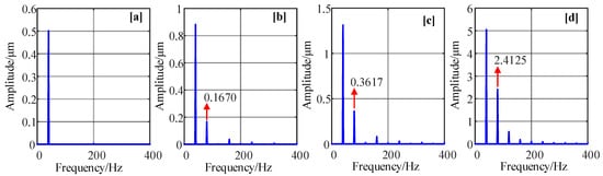 As the looseness stiffness decreases, the vibration amplitude of the rotating shaft gradually increases, as shown in Figure 4. The increase from 0.5 μm, when there is no looseness to the final 5 μm, is nearly ten times larger, and the increasing direction is only along the positive z-axis. This proves that the vibration amplitude is less than the looseness gap, and the pedestal can vibrate freely along the positive z-axis without restriction, which aligns with the assumption.