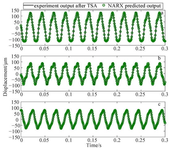 NARX model prediction output (a) No looseness (b) Slight looseness (c) Severe looseness.