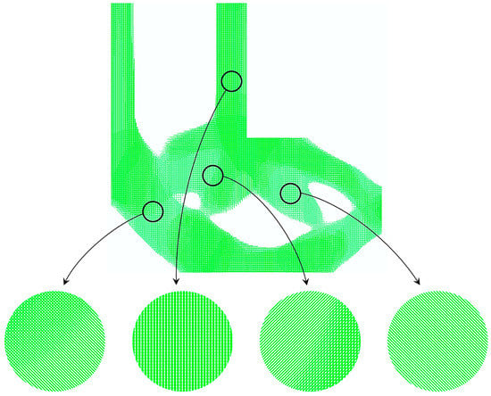 Figure 20 further verifies the flexibility of the optimization method. The volume fractions of the RVEs are different from one other. The reconstruction model with some local details is plotted in Figure 21, and it can be seen that the local details are consistent with the force flow of the structure.