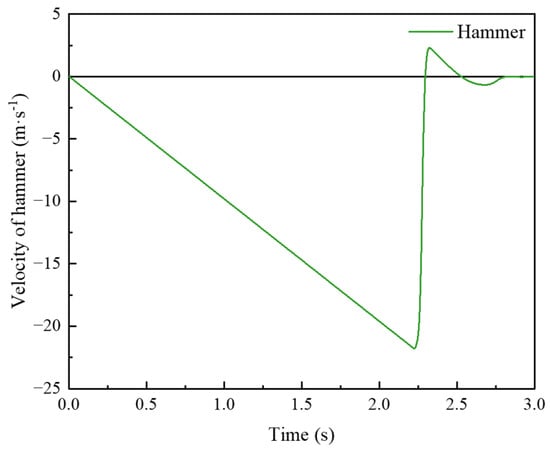 According to the calculation results of Figure 9, the instantaneous hammer–soil contact time was 50 ms at which point the speed of the hammer decreased to zero.