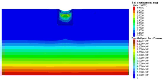 The linear parallel bond model was a contact constitutive model proposed by Potyondy [39] to represent the bond characteristics between particles, which could reflect the microscopic contact characteristics of rock and soil. The continuum adopted the Mohr–Coulomb constitutive model. The linear parallel bond constitutive model was used for the discrete medium. The microscopic parameters in the coupled numerical model are shown in Table 2. It is significant to note that the ball–wall parallel-bond strengths were set to be larger than normal to ensure that the balls at the boundary remained bonded to neighboring zones. The model parameters in Table 2 were verified by comparing the simulated CPT tests with the field CPT results.