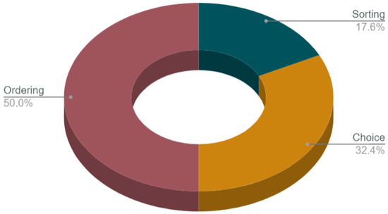 The Plan process appeared in 14.7% of the applications. This process encompasses planning activities to create the actions that will best achieve the requirements of the Make, Delivery, and Return processes. The studies dealing with the Make process totaled 11.8% of the sample, including activities dealing with the transformation of products or the execution of services. Finally, the Delivery process, which involves order, transportation, and distribution management, appeared in just one application (2.9%). Similarly, the Return process, which is related to receiving products that are returned for any reason [48], was also associated with just a single application.