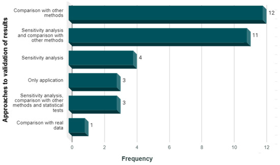 Figure 6b displays the results of the classification of these studies by the type of SCM strategy adopted by the company where the model was applied (RQ2.3). While 58.8% of the studies did not clearly identify the type of SCM strategy employed, 20.6% of the studies involved companies that adopted a Sustainable strategy. In general, sustainable SCM studies are based on triple-bottom-line dimensions and include decision-making criteria related to economic, environmental, and social aspects. Applications in companies employing green supply chains represented 8.8% of the sample and were oriented toward minimizing environmental pollution and improving the environmental performance of products and processes. They were followed by 5.9% of the companies with digital (or smart) supply chains, which are focused on promoting digitalization, automation, and the integration of operations throughout the supply chain. The Lean strategy, which focuses on a reduction in costs and the elimination of waste, was represented by one application (2.9%). Similarly, the LARG strategy, which combines aspects of the Lean, Agile, Resilient, and Green strategies, was also represented by just one application. We did not find applications devoted exclusively to agile or resilient supply chains.